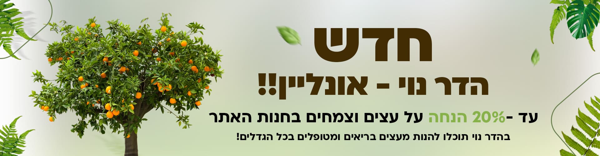 מבחר מוצרים לגינה ולמרפסת! עצים צעירים, שתילים, פרחים, אבני מדרך, סלעים ואדניות דשנים, כלי עבודה ומערכות השקיה ועוד, במשלוח עד הבית או באיסוף עצמי.