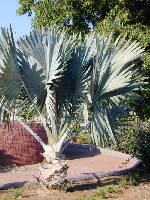 תיאור כללי: דקל נמוך ורחב בעל עלים כפניים בצבע כסוף-כחלחל.