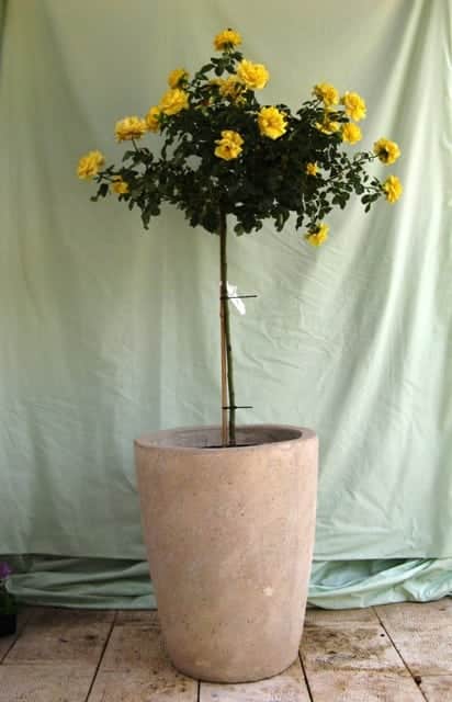 ורד 'פרידום' מעוצב על גזע שתול בכד